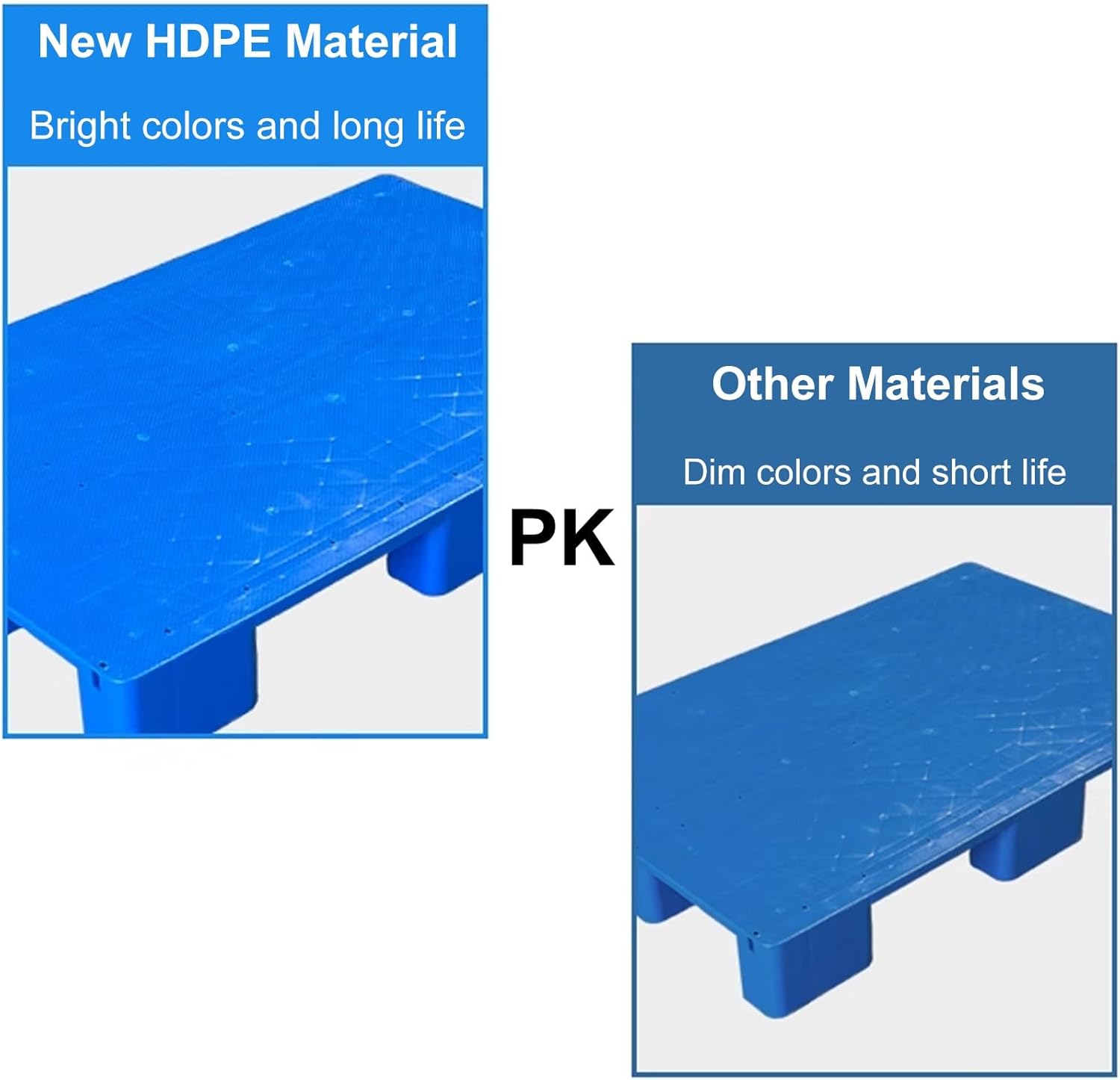 Are you still worried about the safety and efficiency of cargo transportation? Are you still worried about the frequent quality problems of pallets?Now, we bring you a plastic pallet made of a new HDPE material, which will completely solve your troubles and give your warehousing and logistics new vitality!Specification:Product Name: Plastic palletMaterial: HDPE PlasticColor: Blue7 Sizes: 31x24in, 31x31in, 39x24in, 39x31in, 39x39in, 43x43in, 47x39inApplicable temperature: 176℉~-22℉Load bearing: static load 4400lbs, dynamic load 1760lbsApplication: Warehouses, forklift, factory, garages, basements, gas stations, offices, laboratories and more indoor and outdoor placesPackage includes:Plastic pallet × 1